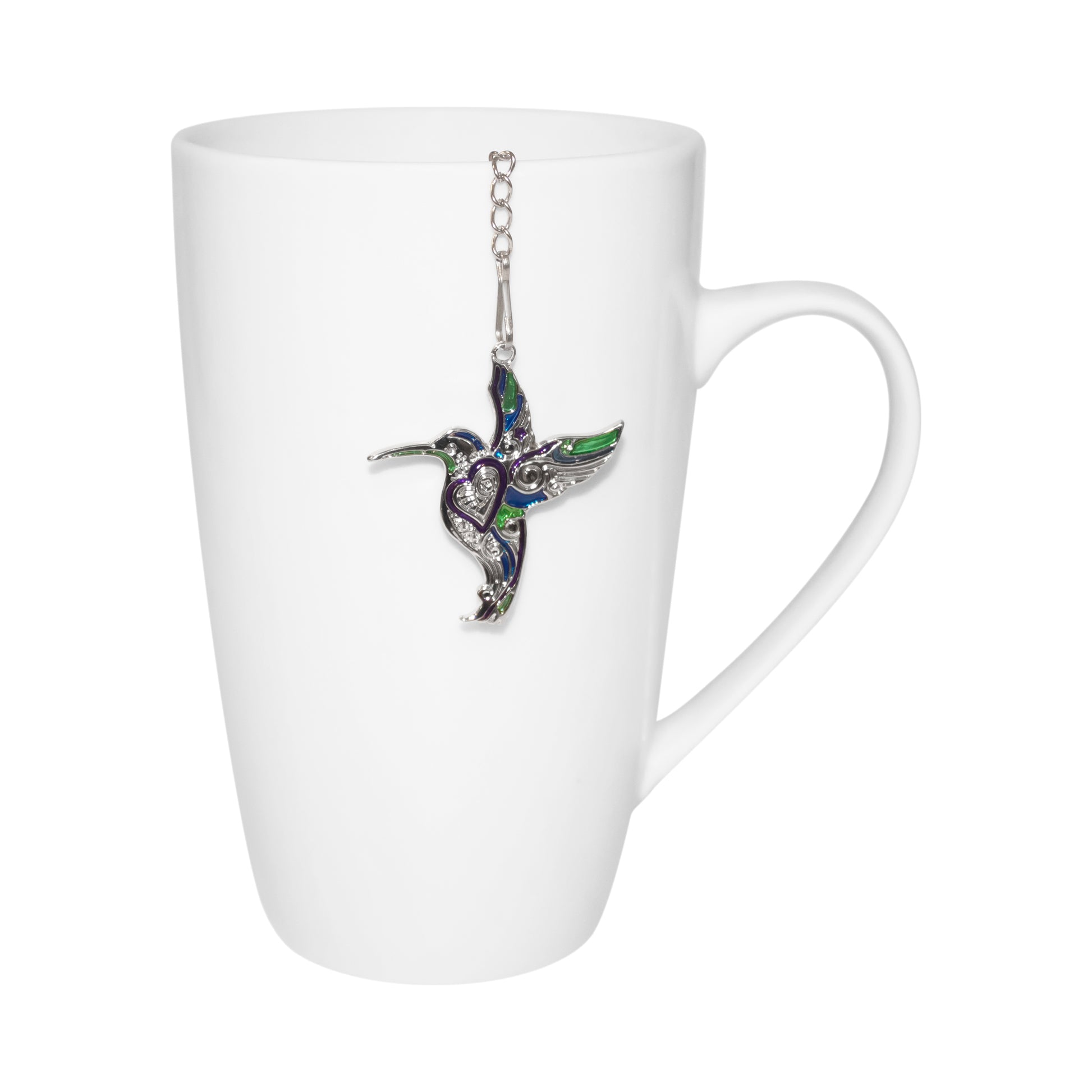 As any loose leaf tea lover knows, an infuser is a must! The multi-colored hummingbird charm hangs outside your teacup or teapot while the sturdy mesh ball sits inside infusing the piping hot water with a delicious surprise. Great for any type of tea or mixing your own herbs!